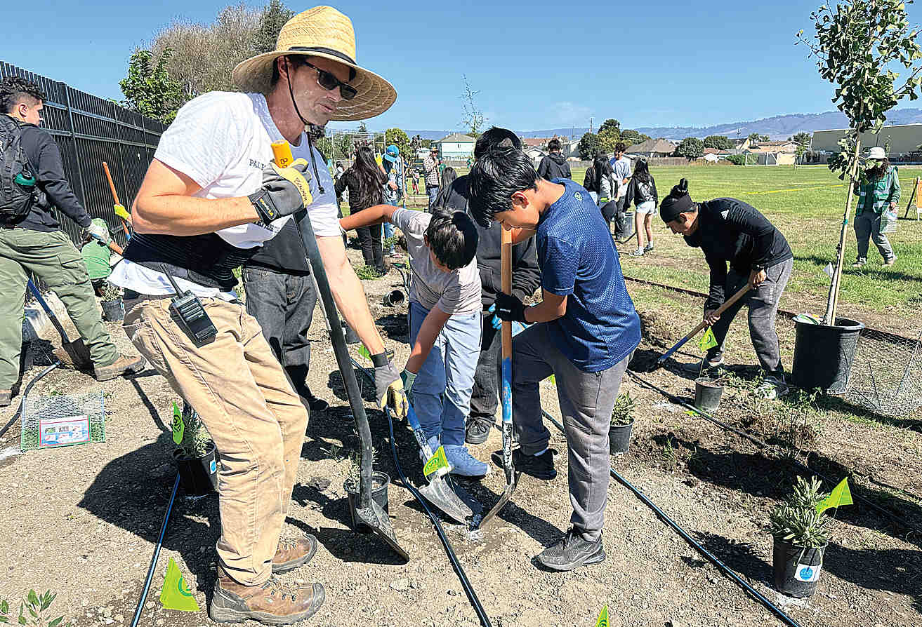 Pajaro Middle School got a major landscape overhaul Saturday during a four-hour community event, which included the planting of shade trees, native plants, edible gardens, a fruit tree orchard, and other environmental conservation features.