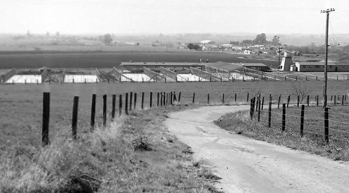 Barracks begin to take shape at the Gondo Labor Camp near Hecker Pass Road in 1955. Built on the land of Eugene Gondo, the camp would eventually open its doors to more than 500 Mexican field workers. (Sam Vestal/Pajaronian file)