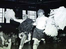 These folks prepare for an exhibit at Salsipuedes School by the PTA on Oct. 20, 1955. (Photo by Sam Vestal/Pajaronian file)