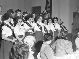 Members of Native Daughters prepare for a holiday event on Oct. 26, 1959 in Watsonville. (Sam Vestal/Pajaronian file)
