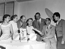 These senior classmates deliver a tune during an open house at Watsonville Union High School on April 27, 1955. (Sam Vestal/Pajaronian file)