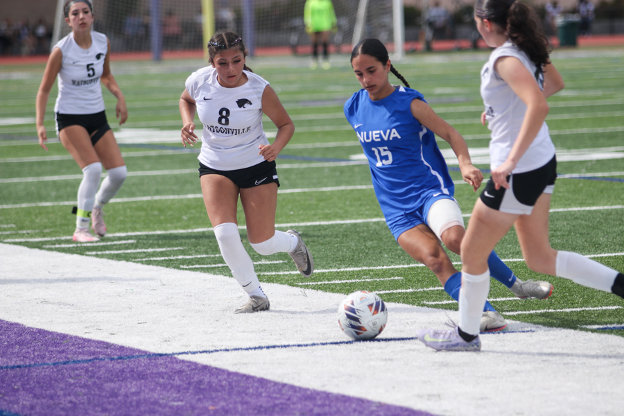 Molina received the pass from the 30-yard line marker, broke away from her defender to take control of the ball, and zipped a shot past Nueva senior goalkeeper Ava Jaliali for her first goal this season.