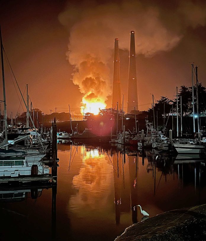The Jan. 16 fire at the Vistra battery energy storage plant in Moss Landing spewed an estimated 25 metric tons—55,000 pounds—of heavy metals into the air, which were deposited across roughly half a square mile of wetland around Elkhorn Slough.