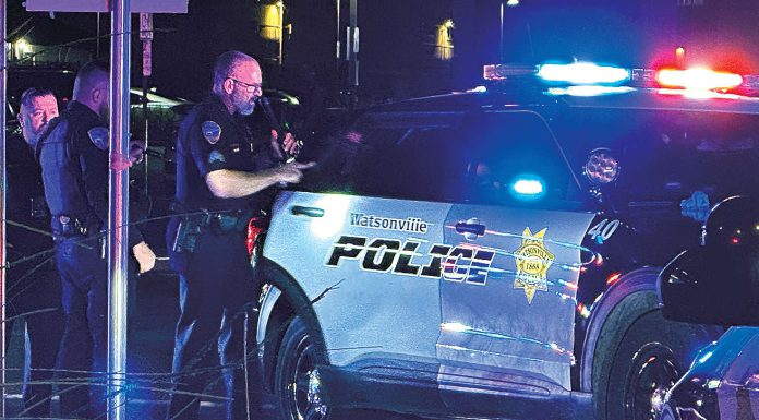 Watsonville Police process evidence Thursday night following a car stop on Hushbeck Street just after 7:30pm. While police managed to take the driver into custody, two people fled down Center Street on foot. Police found a handgun at the scene and recovered a stolen...