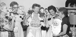 Members of Native Daughters prepare for a Christmas party in Watsonville on Oct. 26, 1959. (Sam Vestal/Pajaronian file)