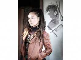 Jes Fuhrman poses with her bird during the BFF Boutique Fashion Show in Capitola Sunday.