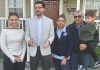 Glen Fitch of Watsonville hands out free poems Thursday along with his dog, Abercrombie, in front of the main branch of the Watsonville Public Library.