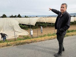 Comedian Bill Murray (second from left) stopped by Cowboy’s Corner Cafe in Watsonville for a meal on Tuesday.