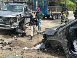 Watsonville firefighters and American Medical Response paramedics deal with a three-vehicle crash Friday on Rodriguez and West Fifth streets.