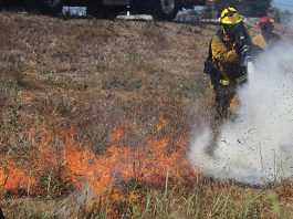 North Monterey County Fire Chief Joel Mendoza said the 1pm fire was about an acre in size. Flames raced across dray...