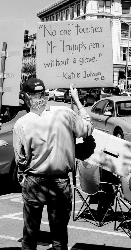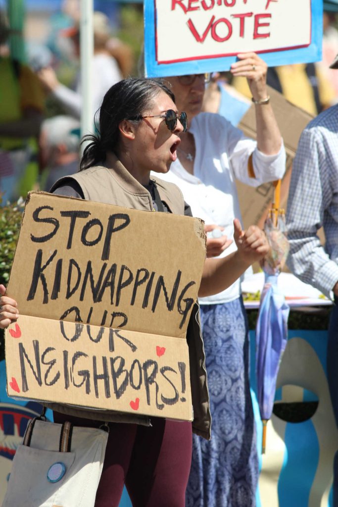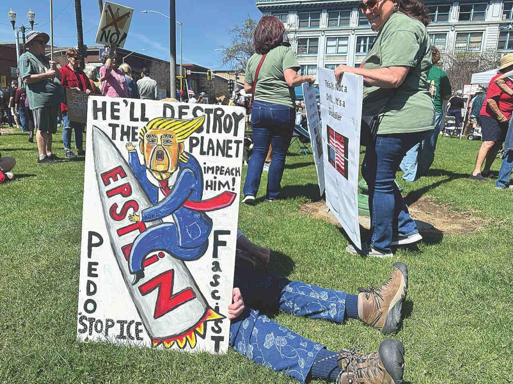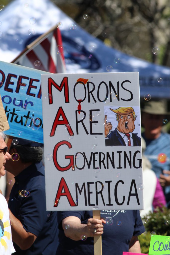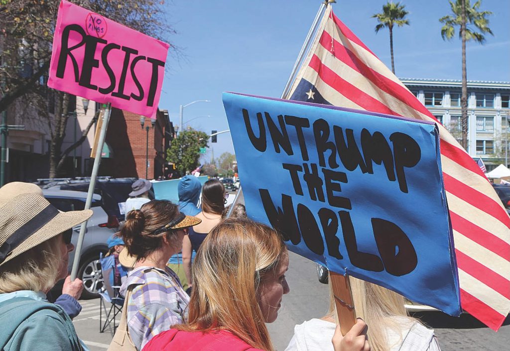 Many people came to the protest with homemade signs to voice their discontent with President Trump. (Tarmo Hannula/The Pajaronian)
