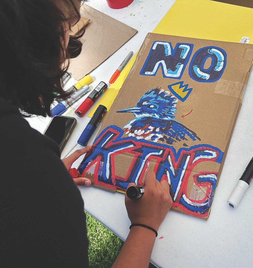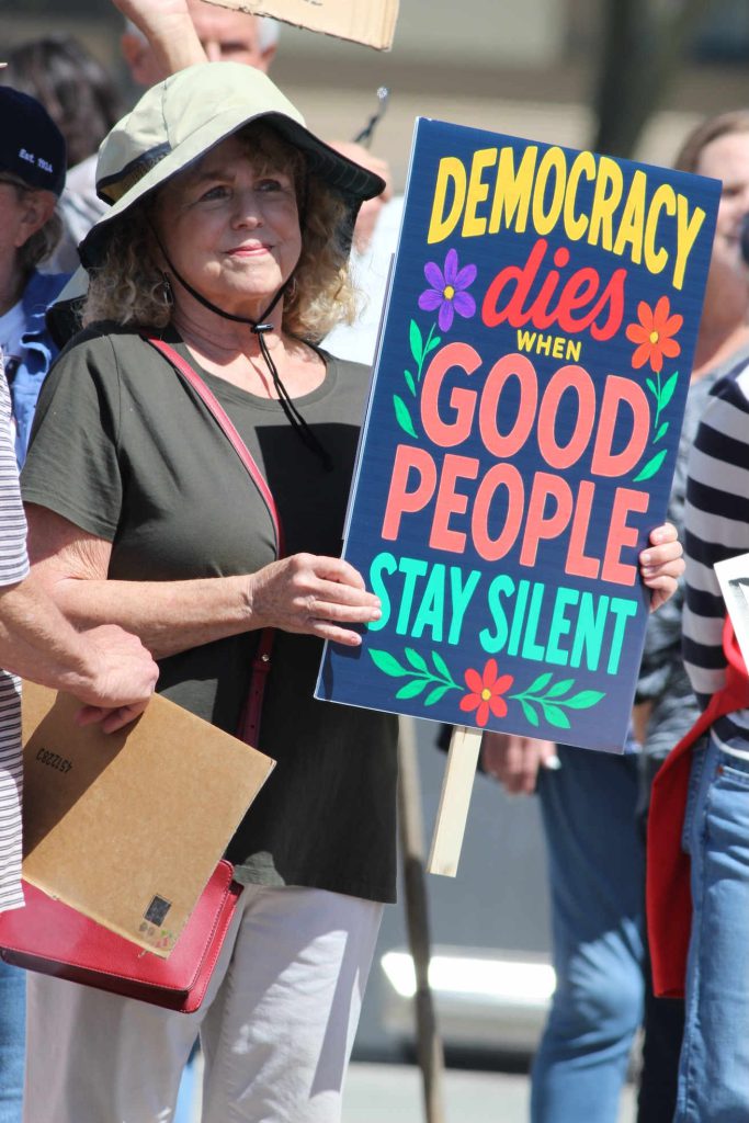 Watsonville artist Liz Williams brought her homemade sign to the event. (Tarmo Hannula/The Pajaronian)