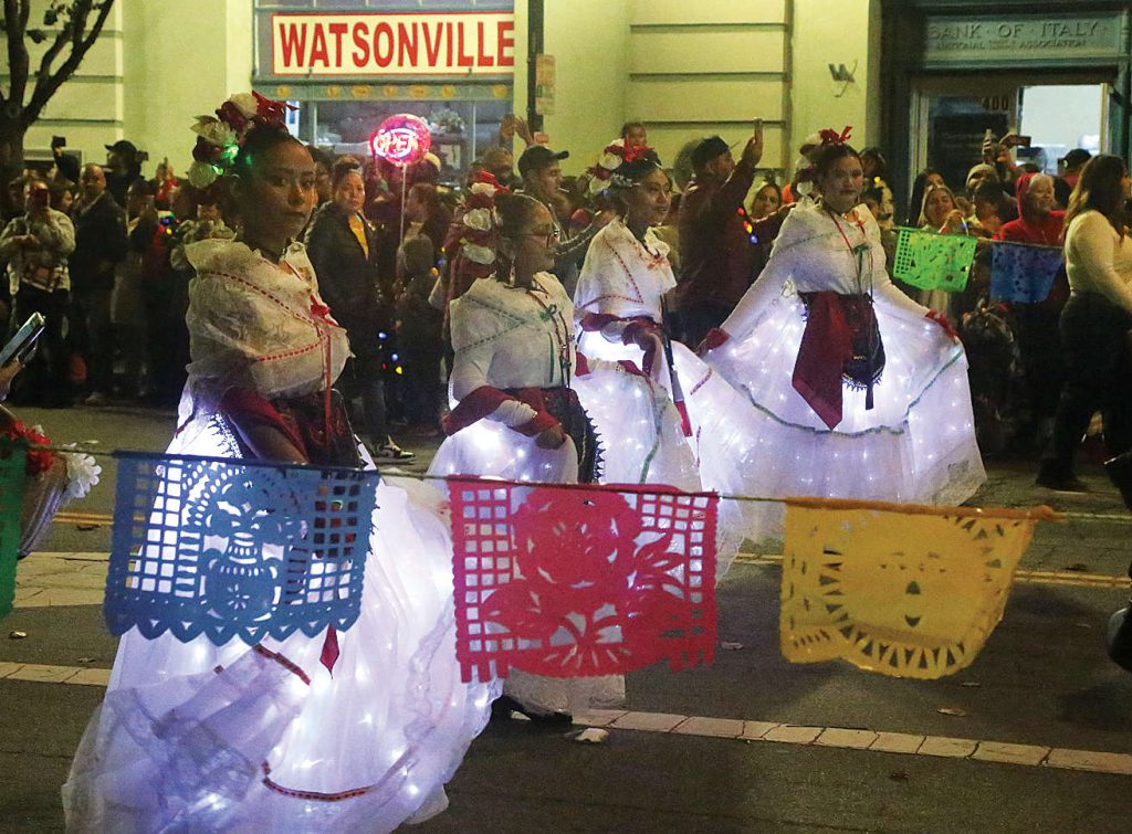 Thousands of people came to downtown Watsonville on Dec. 14 for the first-of-its-kind Noche de Brillo celebration. The free family-friendly evening included a snow play area, lights, crafts hosted by local nonprofits, a holiday market, live entertainment, photos with Santa and a light parade. The City of Watsonville teamed up with the Friends of Watsonville Parks and Community Services and a long list of sponsors to put the event together.