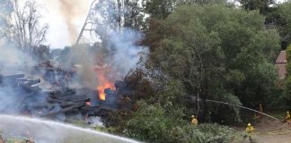 Photo: Fire burns near Pacific Firewood & Lumber