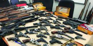 Two arrested with large cache of weapons