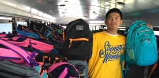 Volunteers fill backpacks for needy students
