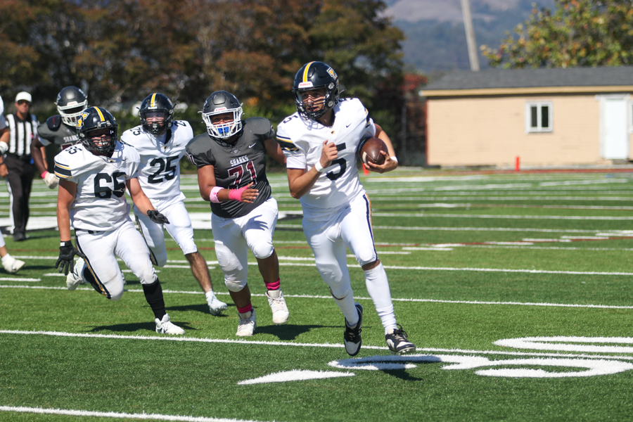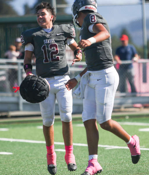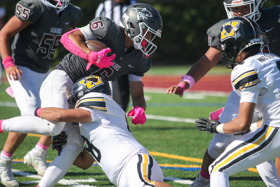 In the end, a big stop by the Shark defense helped lift them past the cross-town rival Wildcatz, 21-14, in league play Oct. 11.