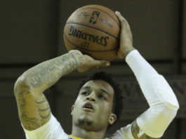 The Golden State guard scored 22 of his 34 points in the first quarter and the Warriors beat Phoenix for the 15th consecutive time, 117-100 on Sunday night in the final home game of the Suns' awful season.