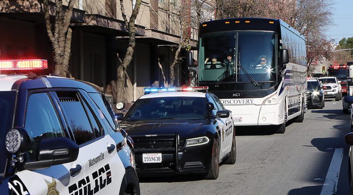 The Watsonville High boys soccer teams received a well-deserved escort out of town as they headed to Sacramento for the California Interscholastic Federation State Division III championship in Sacramento on Saturday.