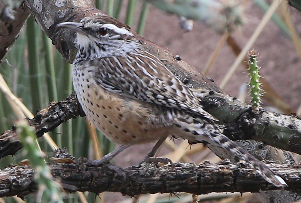 A cactus wren takes a perch inside a jungle gym of cactus limbs at the Desert Museum near Tucson. (Tarmo Hannula/The Pajaronian)