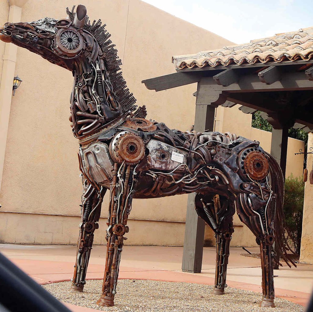 A metal sculpture stands outside a Fine Art Gallery in Tubac, Arizona. (Tarmo Hannula/The Pajaronian)
