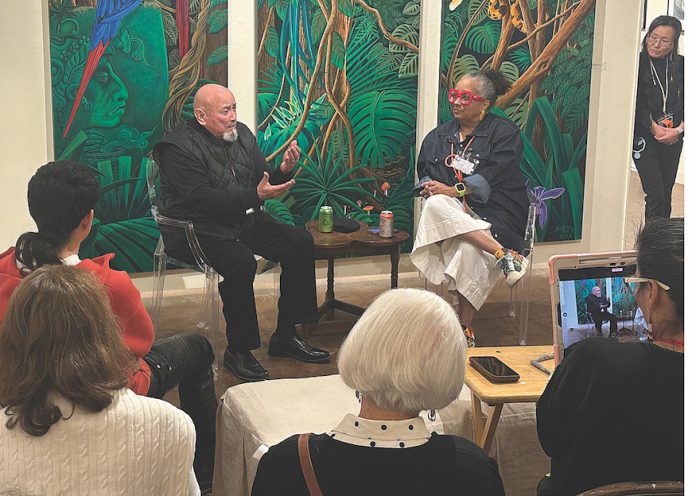 Aranda and about 60 guests sat in the center of the current exhibit, “Yermo Aranda Retrospective” a new art exhibit that spells out 55 years of his work.