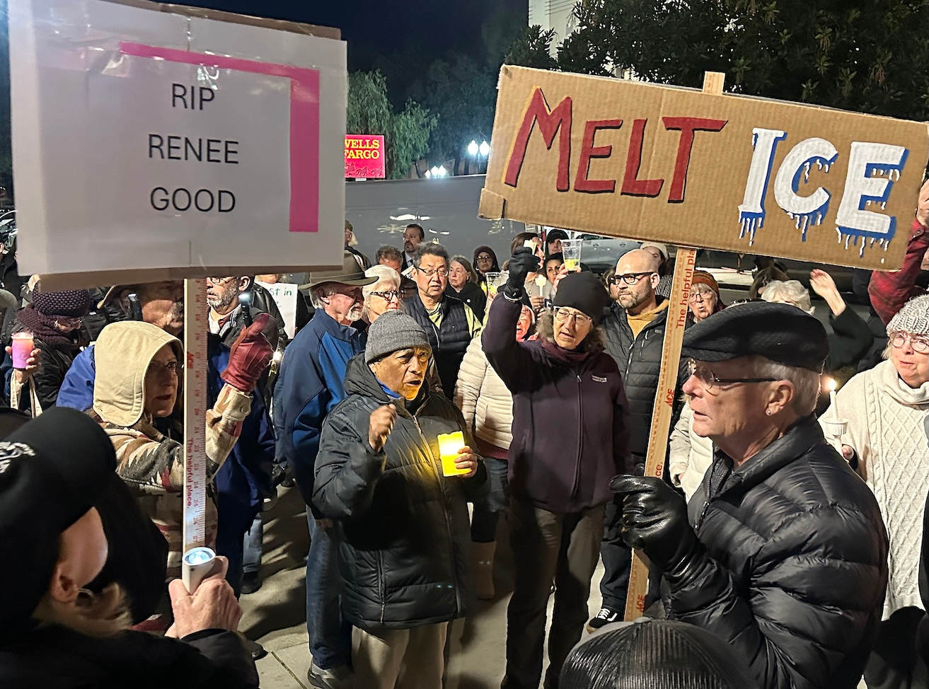Around 150 people gathered in Watsonville Plaza Thursday night in a vigil for 37-year-old Renee Nicole Macklin Good, who was shot and killed by an Immigration and Customs Enforcement officer Wednesday in Minnesota.