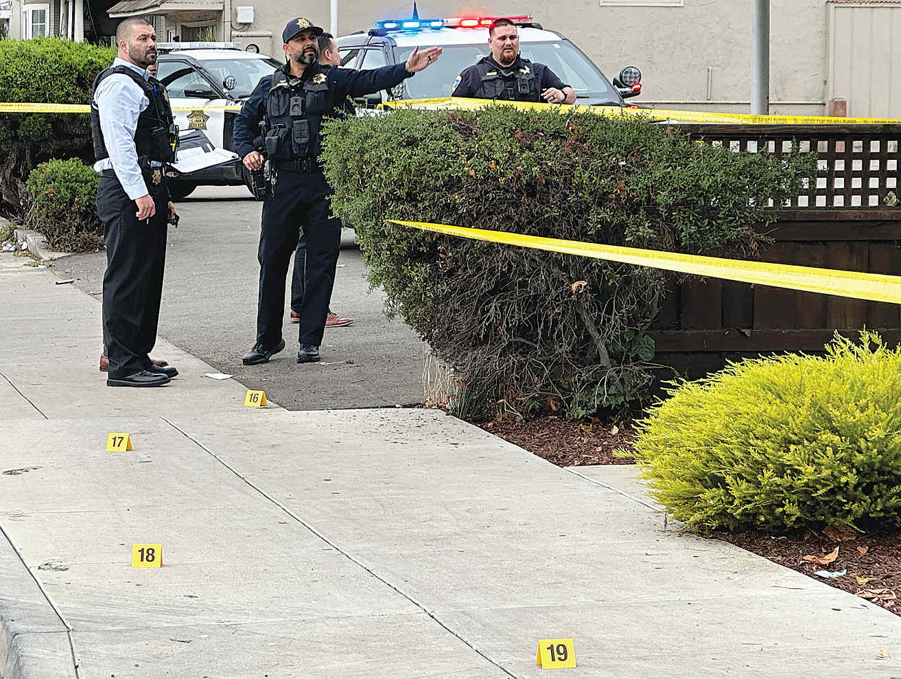 Watsonville Police search for shell casings and other evidence following the shooting. (Tarmo Hannula/The Pajaronian)